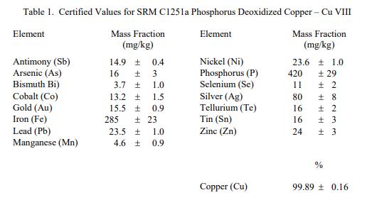 產(chǎn)品名稱:標(biāo)準(zhǔn)參考物質(zhì) NIST SRM C1251a - 磷還原銅-銅VIII