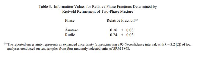 NIST 認(rèn)證值是 NIST 對(duì)其準(zhǔn)確性有最高置信度的值,因?yàn)樗幸阎蚩梢傻钠顏碓炊家颜{(diào)查或考慮在內(nèi) [1]。認(rèn)證值基于在 NIST 進(jìn)行的測(cè)量并由合格的合作實(shí)驗(yàn)室驗(yàn)證 [4]。每個(gè)值列出的不確定度是基于 95% 置信區(qū)間的擴(kuò)展不確定度,根據(jù) ISO/JCGM 指南 [2,3] 中的方法計(jì)算。