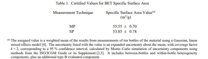 此 SRM 已通過可追溯至 ISO 9277:2010 的不連續(xù)測(cè)壓測(cè)量技術(shù)在液氮溫度 (77.3 K) 下通過氮?dú)馕綔y(cè)定的 Brunauer-Emmet-Teller (BET) 比表面積認(rèn)證。
