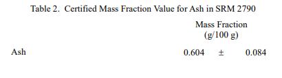 SRM 2790 中元素的認證質(zhì)量分數(shù)值,以干質(zhì)量為基礎(chǔ)報告,灰分分別在表 1 和表 2 中提供。 NIST 認證值是 NIST 對其準確性具有最高置信度的值,因為所有已知或可疑的偏差來源都已被調(diào)查或考慮在內(nèi) [1]。 NIST 進行了賦值分析。認證的質(zhì)量分數(shù)值計算為 NIST 方法的平均值的平均值。相關(guān)的不確定性以大約 95% 的置信水平表示 [2-4]。