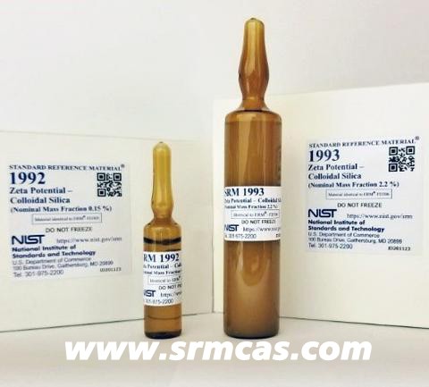 SRM 1992 和SRM 1993 由懸浮在水溶液中的膠體二氧化硅顆粒組成。 SRM 1992 是光散射方法的理想選擇,而 SRM 1993 具有更高的顆粒濃度,適用于電聲儀器的校準。它們可從 NIST 和聯合研究中心作為 ERM-FD305 和 ERM-FD306 獲得。